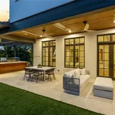 - Exterior Features: Covered Patio/Porch, Fire Pit, Gas Grill, Rain Gutters, Lighting, Outdoor Grill, Outdoor Kitchen, Outdoor Living Center, Private Yard