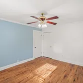 New floor joists, subfloor, and LVT flooring in the primary bedroom