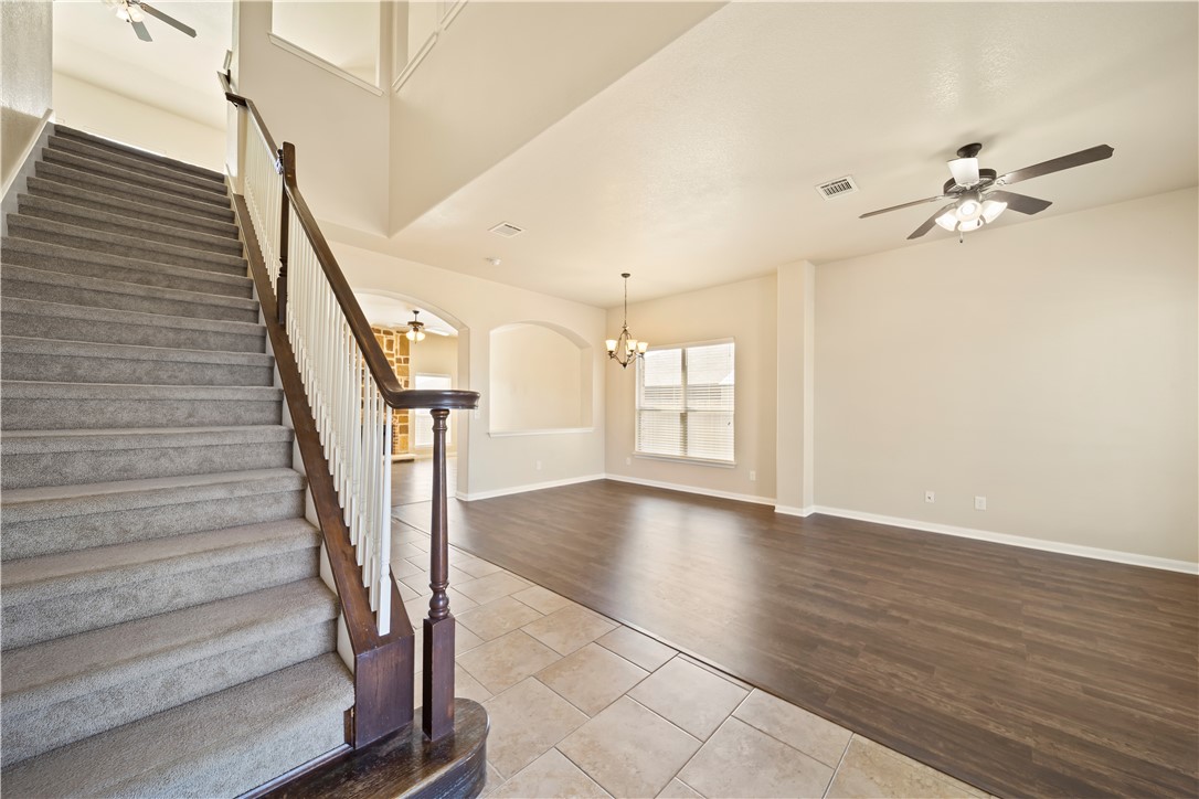 - Interior Features: Ceiling Fan(s), Separate Formal Dining Room, Double Vanity, Granite Counters, High Ceilings, Interior Steps, Kitchen Island, Multiple Living Areas, Multiple Dining Areas, Multiple Closets, Open Floorplan, Pantry, Walk In Closets