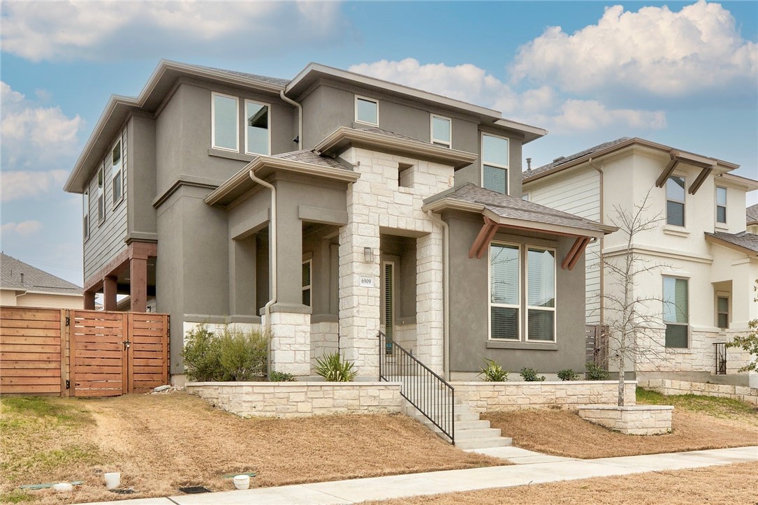 Modern 2-story home with a private backyard located off East Riverside, less than 5 miles from Downtown Austin! The lovely stone/stucco front exterior, attractive landscaping, and covered front porch welcome you inside the home, where you're greeted with 10ft tall ceilings. The first bedroom is located off the entry and currently being used as a home office. The main floor is a true open concept with the kitchen, dining room and living room flowing into one large space. An entertainer's dream! Many...Modern 2-story home with a private backyard located off East Riverside, less than 5 miles from Downtown Austin! The lovely stone/stucco front exterior, attractive landscaping, and covered front porch welcome you inside the home, where you're greeted with 10ft tall ceilings. The first bedroom is located off the entry and currently being used as a home office. The main floor is a true open concept with the kitchen, dining room and living room flowing into one large space. An entertainer's dream! Many upgrades in this space including recessed lighting, feature wall and over island lighting. Natural light floods in from a wall of windows that leads to an oversized covered patio. A perfect extension of the large living space. Great for grillin & chillin with family and friends. The kitchen has all of the home chef's needs, complete with sleek granite countertops, a large pantry, an abundance of cabinetry for storage, and quality stainless-steel appliances including a gas range. The large primary suite is tucked away on the second floor with an amazing ensuite that features dual separate vanities, a soaking tub, a large tiled shower, and big walk-in closet. The spacious secondary bedrooms offer walk-in closets and share a full guest bathroom. A second living space greets you at the top of the stairs. Could be used as a home office, kid's play area, or media room. The private backyard is enclosed by a wood fence for your furry friends. Home includes an attached 2 car garage with additional storage. Located in a great neighborhood with a dog park and just a short commute to Downtown Austin and all that the East Side has to offer. Also close to 35/Ben White/71/183 and tech companies (Oracle, Tesla, FB, Google, Atlassian, BOX). Schedule a showing today!