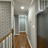 entire plumbing, electrical, a/c ducts, 80% drywalls, ceilings, windows, doors, kitchen, bathrooms, ss appliances, cabinets, counter top, brazilian h/w floors on the entire main floor, water heater, hvac system, moldings, recess lights, two car garage, closets, washer & dryer, paint. Also has huge patio, porch, storage shed, huge leveled backyard, secluded. Ample parking. Shows well. No pets, smoking, good rental history a must Agent is the owner.