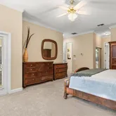 - Interior Features: Ceiling Fan(s), Crown Molding, Eating Space In Kitchen, High Ceilings, Primary Bedroom Main Floor, Solid Surface Counters, Stone Counters, Thermostat