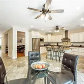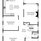 - RoomDescription 1: Large entry foyer, Powder Room, Living Room, Formal Dining Room, Family Room w/ Fireplace, Eat-in-Kitchen w/ granite counter tops, Viking Oven/Range, Stainless steel appliances, Sliding glass door access to patio/private yard