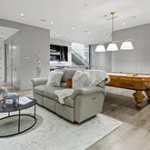 The finished lower level introduces a dramatic media lounge, wet bar with Thermador refrigeration, powder room, and two private guest suites.