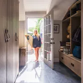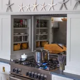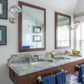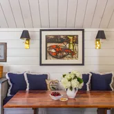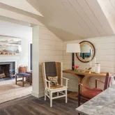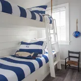 - Interior Features: AC,Ins,OSh, Floor 1: Enter through double French doors to the handsomely appointed kitchen with marble topped custom limed oak island, custom kitchen cabinets topped with pietre cardosa stone in a vaulted ceiling kitchen framed in wide board shiplap. Fixtures throughout the house are Waterworks. To the left is a mudroom with extensive limed oak built-ins to house foodstuff, supplies, coats and towels and washer and dryer. To the right is the sitting room with working fireplace and a half bath. Off the hallway behind a barn door is a “ships berth” bunk room and to the left a queen bedroom with a large closet and barn doors. Wide floorboards throughout are a grey driftwood., Floor 2: Upstairs is the master bedroom, and a fourth bedroom with a built-in double bed and trundle. There is also a master bathroom with double vanity and an oversized glass walled shower and waterworks fixtures. The second floor hallway has the same handsome architectural feature of the wide boarded shiplap and several storage spaces. Floorboards throughout are refurbished wide pineboards refinished to a grey patina.