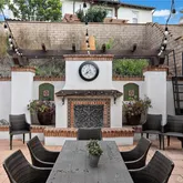 The backyard is an entertainer’s dream, featuring a covered patio, built-in BBQ, and an outdoor fireplace—perfect for gatherings year-round.