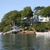 Commanding an unparalleled setting on Manchester Harbor, with 800' of waterfront, beach and cove access, River House must be seen to be believed. Sitting atop the peninsula where the harbor narrows, at the end of a private drive where the land meets the sea, this shingle-style home offers exceptional views, unrestricted water access, and 7,000 sq ft of living space. This remarkable estate, which includes a private boathouse, deep-water dock, and tennis court, has had just three owners.Commanding an unparalleled setting on Manchester Harbor, with 800' of waterfront, beach and cove access, River House must be seen to be believed. Sitting atop the peninsula where the harbor narrows, at the end of a private drive where the land meets the sea, this shingle-style home offers exceptional views, unrestricted water access, and 7,000 sq ft of living space. This remarkable estate, which includes a private boathouse, deep-water dock, and tennis court, has had just three owners.