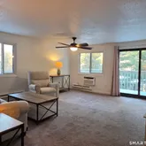 - Room Features: Balcony/Deck,Ceiling Fan,Combination Liv/Din Rm,Dining Area,Sliders,Wall/Wall Carpet