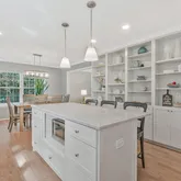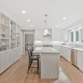 - Room Features: Breakfast Room, Countertop(s) - Quartz, Island, Kitchen - Gas Cooking, Lighting - Recessed, Flooring - Solid Hardwood, Crown Molding, Built-Ins