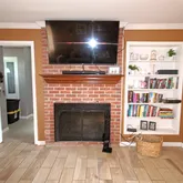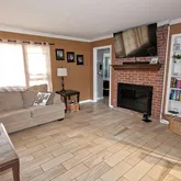 • Living Room: Fireplace - Woodburning, Floor - Porcelain