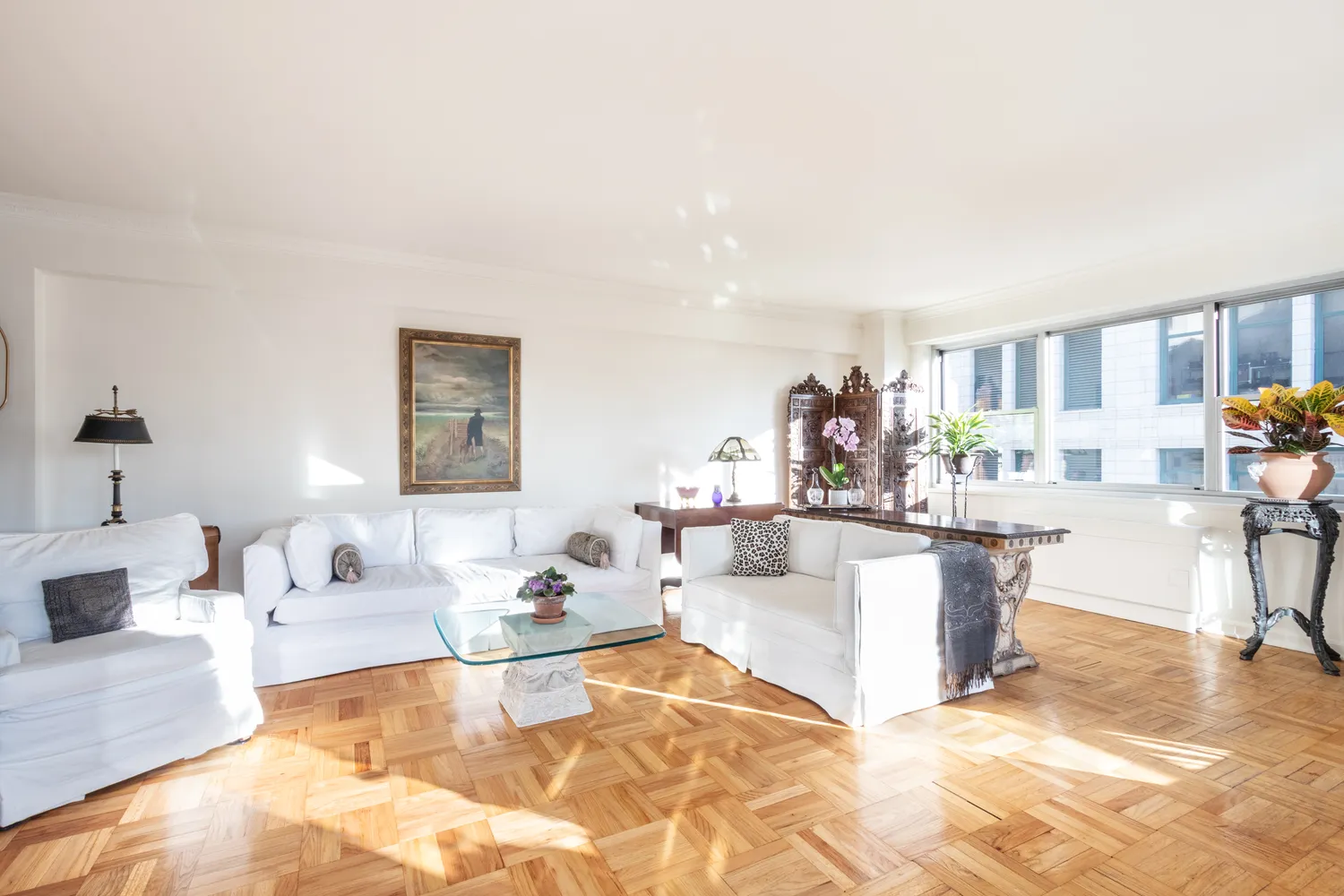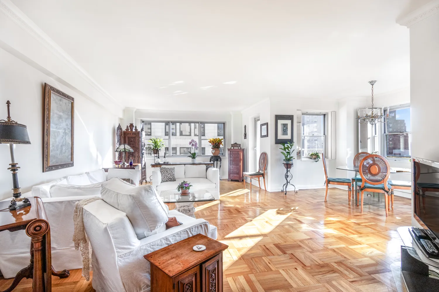 A graceful entry foyer opens into a majestic, 36’ living room with both South...Make your home in this most coveted, white glove co-op in the heart of Greenwich Village, the prestigious Stewart House. Spanning approximately 1,500 square feet, this sprawling, 14th floor, corner, two-bedroom/two bath unit is bathed in glorious, golden light from open Southern and Western exposures. Best of all you can enjoy the magic of the setting sun against the gorgeous NYC skyline from your serene and private terrace.