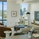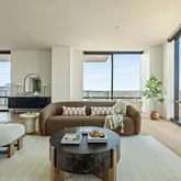 Residents of 70 Rainey enjoy over 31,000 square feet of private indoor and outdoor amenities, including an infinity-edge pool with sundeck, hot tub, cold plunge, outdoor dining areas with TVs and grills, lush landscaping, and a dog park. Indoor spaces offer multiple lounges, private dining areas, a theater room, a state-of-the-art fitness center, and 24/7 concierge service.