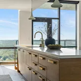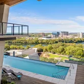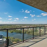 The open-concept layout seamlessly connects the living, dining, and kitchen areas, extending to a spacious patio...Where understated elegance meets modern luxury, this exceptional residence offers breathtaking panoramic views of Lady Bird Lake and the downtown Austin skyline. Located just steps from the Butler Hike and Bike Trail, this three-bedroom home with a bonus den/office wraps the entire southern end of the building, featuring floor-to-ceiling windows that capture the beauty of sunrise to sunset.