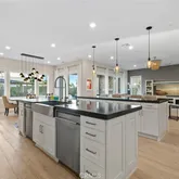 - Room Kitchen Features: Built-in Trash/Recycling, Kitchen Island, Kitchen Open to Family Room, Pots & Pan Drawers, Quartz Counters, Self-closing cabinet doors, Self-closing drawers, Utility sink, Walk-In Pantry