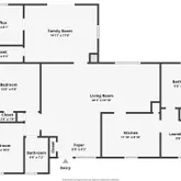 - Room Description: Continuous vinyl floors, flow to kitchen