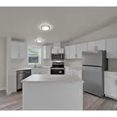 - Kitchen Appliances: Dishwasher, Free Standing Range, Free Standing Refrigerator, Island, Microwave, Quartz, Range Hood, Stainless Steel Appliance