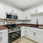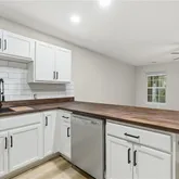 Updated kitchen featuring new countertops and a designer tile backsplash
