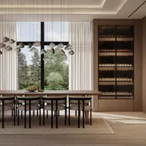 Designed to impress, the home features dramatic walls of glass, soaring ceilings, and bold architectural lines paired with warm, timeless finishes. Highlights include imported Italian cabinetry, boutique European fixtures, a Sub-Zero & Wolf appliance suite, wide-plank European oak floors, bespoke closets, a statement wine display wall, and a luxury fireplace surround.