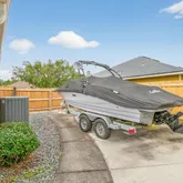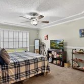 - General Property Information: Public Remarks: Welcome to this spacious 3,016 sq ft all-brick home offering 5 bedrooms and 3 bathrooms in the established Foxchase neighborhood. With a newer roof, this property provides peace of mind from the start. The primary suite is conveniently located on the lower level, offering privacy and easy access. Upstairs, you'll find a full guest suite complete with its own bedroom and ensuite bathroom—perfect for extended family, teens, or visitors. Inside, the layout features a double-sided gas fireplace that warms both the family room and the large bonus room with vaulted ceilings, creating two inviting spaces for gathering, relaxing, or entertaining. Outside, enjoy peaceful pond views, a new fenced backyard, and a concrete pad ideal for boat or RV parking. This home offers solid construction, generous square footage, and a layout designed for both comfort and flexibility—all conveniently located close to major shopping, dining, and key roadways for effortless everyday living.