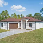 Welcome to this beautiful newly built home featuring 3 spacious bedrooms and 2 elegantly designed bathrooms. Enjoy an abundance of natural light, 10-foot ceilings throughout, and modern fixtures and lighting that enhance the home’s open and airy feel. The luxury kitchen offers premium granite countertops, a stylish full backsplash from counter to cabinetry, stainless steel appliances, and upgraded modern cabinetry—perfect for cooking and entertaining. Both bathrooms provide a spa-like ambiance with high-end finishes. Additional features include an in-residence laundry room complete with washer and dryer, impact doors and windows for added safety and energy efficiency, and epoxy flooring in the garage for a clean, polished look. Relax outdoors on your lanai under truss, ideal for year-round enjoyment. The exterior also features a paver driveway that adds curb appeal and durability. Situated on a generous half-acre lot, there’s plenty of room to build a pool and create your own Florida paradise.