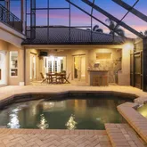 - Pool Features: Child Safety Fence, Heated, In Ground, Lighting, Salt Water, Screen Enclosure