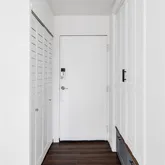 Every detail has been thoughtfully reimagined, including a chef-inspired kitchen with quartz countertops, custom cabinetry, high-end appliances, and an open layout designed for both comfort and function. The remodel uniquely added extensive interior storage, making this unit stand apart from any other in the community. High ceilings, wide-plank flooring, modern lighting, newer A/C units, updated double-pane windows, and custom window treatments complete the sophisticated interior.