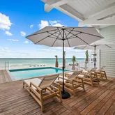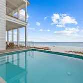 Set on an expansive 0.6-acre Gulf-front homesite, this four-story architectural statement blends timeless coastal elegance with modern luxury. Its commanding presence is balanced by natural textures and thoughtful design that harmonize with the surrounding seascape. Outdoor living takes center stage, with sweeping terraces that extend the home's living spaces toward the horizon. The heated saltwater pool glistens against the backdrop of emerald waters, offering year-round enjoyment in a setting that feels both tranquil and grand. From sunset gatherings around the outdoor kitchen to quiet mornings overlooking the Gulf, every exterior detail has been crafted to elevate the experience of beachfront living. Interior: Curated Luxury and Timeless Design