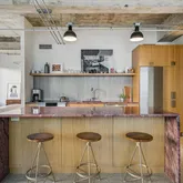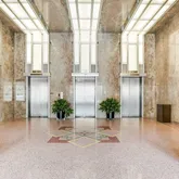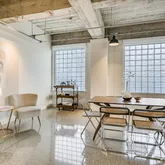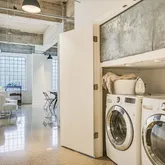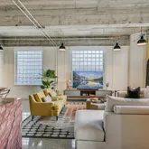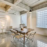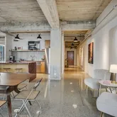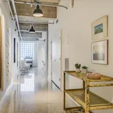 Tall ceilings, exposed concrete, stylish terrazzo flooring, and six large windows create an airy, light-filled environment that is sophisticated and inviting. The updated kitchen and bath elevate the home with contemporary finishes that complement the building’s architectural heritage. Stylish remodel by designer Robert Bentley. As a corner unit, the residence enjoys enhanced privacy and abundant natural light, making the flexible layout ideal for creating distinct living, dining, work, and sleeping zones. Whether your style leans minimalist or more curated, the generous scale supports it all.