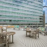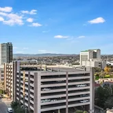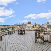 Residents also enjoy access to a well-equipped fitness center, secure assigned garage parking, and a community rooftop deck with panoramic skyline views.