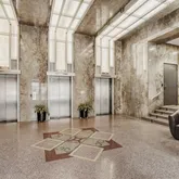 This beautifully updated studio blends modern comfort with preserved character, including the original 1938 terrazzo flooring. High ceilings with exposed conduit feel crisp against neutral white walls, while the vertical scale adds depth and openness. Oversized, fully operable windows invite fresh air and have added panels for soundproofing and energy efficiency. East-facing downtown views flood the space with natural light, reflecting off nearby buildings so you can enjoy both sunrise and warm sunset hues in the late afternoon.