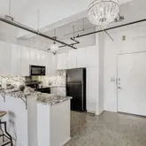 - Room Description: The kitchen is bright and modern with custom contemporary cabinetry that includes under-lit, tall upper cabinets and built-in pantry storage; Premium granite countertops and backsplash; Chic chandelier fixtures; The peninsula overlooks the living area and provides bar seating for entertaining and dining