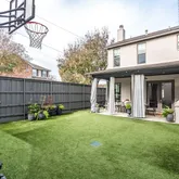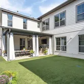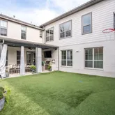 Step outside to the covered patio complete with a built-in grill and outdoor TV. The turfed backyard with a putting green is ideal for play and relaxation alike.