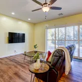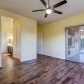 - Interior Features: Ceiling Fan(s), Counters-Solid Srfc, Eat-in Kitchen, Granite Counters, Kit/Din Combo, Kitchen Island, Live on One Level, Master Downstairs, Pantry, High Ceilings, Walk-In Closet(s), Wash/Dry Connection, Water Pur. System