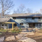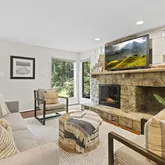 Tucked away in a quiet enclave of Alexandria, this peaceful retreat has been beautifully rebuilt and expanded to blend timeless charm with modern convenience. Surrounded by an enchanting storybook garden on a rarely available .50 acre lot, this open floor plan home offers 4 bedrooms all with ensuites (one on the MAIN LEVEL), 4.5 bathrooms, and nearly every feature today’s homeowner desires — including rich Brazilian cherry hardwood floors, three fireplaces, a timeless kitchen, abundant storage, and a spacious 2-car garage. The main level is designed for both comfort and entertainment, featuring a dramatic vaulted living room with skylights, exposed wood beams, and a stunning wood-burning fireplace framed by six picture windows. The formal dining room flows seamlessly to a flagstone patio, while the adjacent family room includes a second fireplace, built-in speakers, and direct access to the side yard. At the heart of the home is a gourmet kitchen outfitted with high-end European cabinetry, granite countertops, and premium stainless-steel appliances — including a Miele dishwasher, Dacor 5-burner gas cooktop, and GE double wall oven. A cozy breakfast area offers built-in cabinetry and walk-out access to the backyard. Upstairs, the primary suite is a true retreat — featuring a double-sided gas fireplace, vaulted ceilings with exposed beams, a private balcony, and a spa-inspired bath with a jacuzzi soaking tub, walk-in shower, and massive custom walk-in closet. Each of the three secondary bedrooms offers an ensuite bathroom, ceiling fan, and generous closet space. The home’s upper-level loft serves as an ideal office or creative space, complete with built-in desks, shelving, and storage. A flex/exercise room with skylights and mirror walls offers even more space to tailor to your lifestyle needs. Additional highlights include: