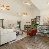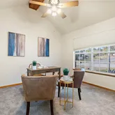 - Interior Features: TrayCeilings, CeilingFans, CarbonMonoxideDetector, DoubleVanity, GardenTubRomanTub, HighCeilings, HisAndHersClosets, HomeOffice, MultipleClosets, SoakingTub, SeparateShower, TileCounters, TubShower, VaultedCeilings, WalkInClosets, EatInKitchen, KitchenDiningCombo