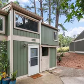The kitchen features ample cabinet space and comes complete with a refrigerator, plus the washer and dryer are also included...Welcome to 712 Godwin Court, a charming end-unit townhome surrounded by mature trees for extra privacy and a peaceful setting. This 3-bedroom, 1.5-bath home offers an open floor plan with versatile sunroom with vaulted ceilings and walls of windows overlooking the wooded backyard. Step outside to a spacious brick patio, ideal for entertaining or enjoying quiet evenings outdoors.