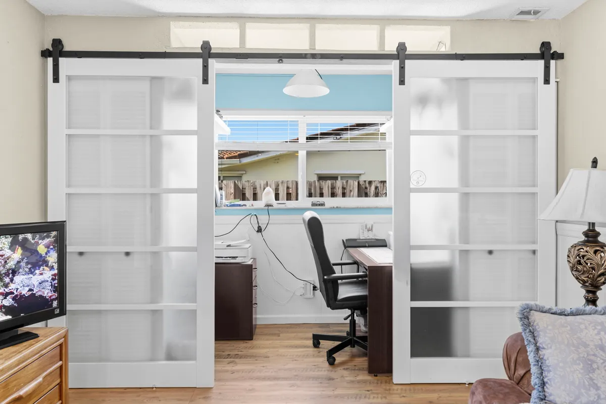The spacious kitchen is a chef’s delight, with granite countertops, stainless steel appliances, plenty of cabinet space, and an island ideal for entertaining. From the kitchen, take in views of the sparkling saltwater heated pool and lush backyard. The master suite offers a walk-in closet and peaceful poolside vistas.