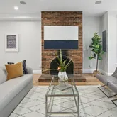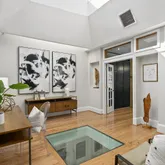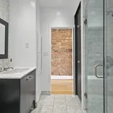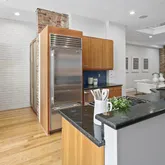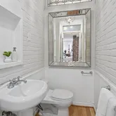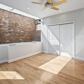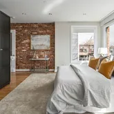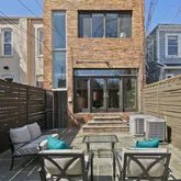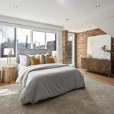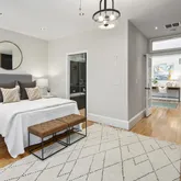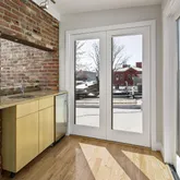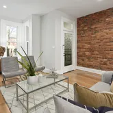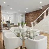 The new solid wood floors carry up the next two levels of the home. As you ascend the stairs to the second level, you will immediately notice the large second living area in the middle which contains a large skylight and the glass floor looking down to the first floor dining space. The primary suite is at the front of the home and features a wall of built-in closets, fireplace with custom tiling and en-suite bathroom complete with soaking tub/shower combination and a linen closet. The second large bedroom on the second floor to the rear of the home has streaming with natural light and a wall of exposed brick and built-in closets. Just off this bedroom is a full bathroom with marble tile, standup shower and houses the brand new washer and dryer. The third bedroom is on the third floor of this home complete with an abundance of natural light through the numerous windows, skylights and windowed doors, exposed brick and a wet bar in the landing behind the closet that is perfect a space for your Peloton or Yoga retreat.