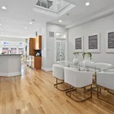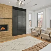 This stately rowhome draws you in from first sight. Walking through the entry door, you will notice the original tiling in the double entry. Opening the main door to the home, your eyes are drawn to the stunning (newly installed) solid hardwood floors, brick fireplace, streaming natural light and huge, open floor plan. The large living room surrounds the first of four fireplaces in this home. A large dining area adjoins the living room - don't forget to look up to see the streaming light coming from the skylights above. A powder room is tucked just off the dining room. An entertainer's dream, the kitchen will inspire you to host many dinner parties with its Viking gas range, Subzero refrigerator, tons of cabinet and counter space to include a butlers pantry with wine refrigerator and prep sink. A breakfast area is at the end of the home with a wood stove and wall of windows overlooking your private outdoor space.