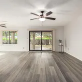 This bright & airy end unit features an extended, tiled back patio, perfect for relaxing. This updated beauty is located on a prime lot, just steps away from the community pool with no neighbors beside or behind.