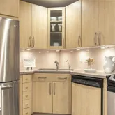- Appliances: Dishwasher, Disposal, Electric Cooktop, Front Controls on Range/Cooktop, Microwave, Refrigerator, Stainless Steel Appliance(s)