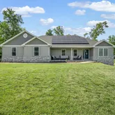 Welcome to this stunning one-story ranch, built in 2019 by ANBEC Properties. This custom home features eco-friendly solar panels, ensuring minimal monthly bills, and a high-efficiency HVAC system and furnace installed in 2022 for year-round comfort. Step inside to discover an open floor plan with a cozy gas fireplace and a beautiful view of the tree-lined backyard. The spacious kitchen includes stainless steel appliances, a large island perfect for entertaining, and a walk-in pantry. The master bedroom...Welcome to this stunning one-story ranch, built in 2019 by ANBEC Properties. This custom home features eco-friendly solar panels, ensuring minimal monthly bills, and a high-efficiency HVAC system and furnace installed in 2022 for year-round comfort. Step inside to discover an open floor plan with a cozy gas fireplace and a beautiful view of the tree-lined backyard. The spacious kitchen includes stainless steel appliances, a large island perfect for entertaining, and a walk-in pantry. The master bedroom is a serene retreat with a large walk-in closet and a private bathroom. Bedrooms two and three are on the opposite side of the house, sharing a full bathroom. The walkout basement is unfinished, with a rough-in for a future bathroom and an egress window for a future bedroom. Additionally, the property includes a detached shed, offering extra storage or workspace. This home combines modern luxury with practical living, making it an exceptional place to call home!