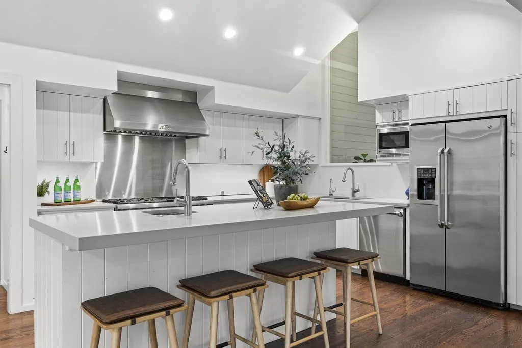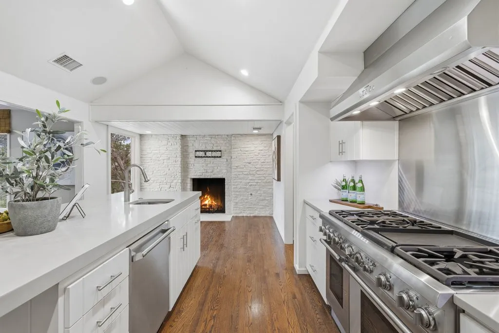 Extensively remodeled in 2011 through a thoughtful transformation designed by architect Tim Cuppett, AIA, and executed by Jenkins, the home blends architectural character with an open, inviting layout designed to maximize natural light and lake views. Expansive windows throughout the main living areas frame the surrounding landscape, creating a seamless connection between the interiors and the water beyond.