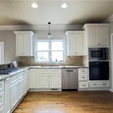 - Kitchen Features: Breakfast Bar, Breakfast Room, Cabinets White, Pantry Walk-In, Solid Surface Counters, View to Family Room