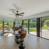 Fall in love with this impeccably renovated 3-bedroom, 2-bathroom villa nestled in the winding, tree-lined enclave of Muirfield Villas. ''Move-in ready'' is an understatement—this home requires absolutely no work. The heart of the home features a stunning kitchen with white shaker cabinetry, decorator backsplash, granite countertops, and stainless steel appliances, all flowing into a spacious living area with tile flooring throughout. The true showstopper is the glorious 30x13 morning room. Lined with impact glass sliding doors, it overlooks a lush, private lawn perfect for morning coffee or evening relaxation. The primary suite is a true retreat, offering dual walk-in closets and a renovated spa-like bath with a granite dual-sink vanity and tiled walk-in shower. Outside, the lifestyle continues with an extended brick-paver patio, lushly landscaped for privacy and cookouts. Peace of mind comes standard with a 2020 roof, newer AC units, accordion shutters on all windows, and custom exterior storage. Located in the gated City of Atlantis, you'll enjoy two championship golf courses (no membership required!) , a private police department, and Kintz Parkfeaturing tennis, pickleball, and a water park.