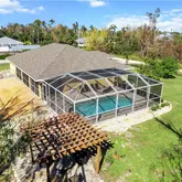 Step inside to soaring 14-foot cathedral ceilings, abundant natural light, and an open floor plan perfect for entertaining and everyday living. The chef’s kitchen features stainless steel appliances, a breakfast nook overlooking the tropical backyard, ample storage, and solid-surface countertops. The living and dining areas flow seamlessly to the screened-in lanai, creating the perfect indoor-outdoor living experience Southwest Florida is known for. The master suite offers a private retreat with tray ceilings, dual walk-in closets, sliding glass doors to the pool, and a luxurious bathroom with dual vanities, a soaking tub, and a walk-in shower. Three additional bedrooms and two full guest bathrooms provide plenty of space for family and friends, or a dedicated home office or gym. Enjoy the ultimate relaxation in your screened pool area, surrounded by lush landscaping, palm trees, and serene nature views. Multiple seating areas provide the perfect setting for sunbathing, barbecues, or simply soaking in the peaceful island atmosphere. A dog run adds convenience for pet owners, and the oversized garage offers ample storage for bikes, kayaks, golf carts, and even boats. For boating enthusiasts, this home is just minutes from several Pine Island and Pineland boat ramps, offering direct access to the Gulf of Mexico and back bay waters for legendary fishing. Enjoy world-renowned sportfishing for tarpon, redfish, snook, grouper, and snapper, or spend the day exploring the nearby barrier islands and sandy beaches.