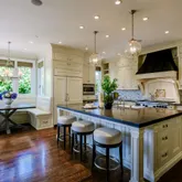 - Kitchen: Hood Over Range, Island with Sink, Oven Range, Refrigerator