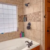 - Interior: High Ceilings, Master On Main Level, Soaking Tub, Tile Bath, Walk-In Closet(s), Whirlpool Bath