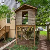 Access to a partially finished lower level is available from the kitchen, as well as from its own side door. On that level you’ll find a rec-room/family room space, as well as another windowed room that can serve as a quiet work space. There’s also plenty of storage space on that level as well as the floored attic (accessible through a second level bedroom at top of the stairs). The home also has a gravel driveway and a tree house!