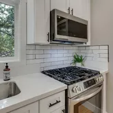 - Kitchen Appliances: Builtin Oven, Builtin Range, Builtin Refrigerator, Convection Oven, Dishwasher, Free Standing Gas Range, Gas Appliances, Microwave, Quartz, Solid Surface Countertop, Stainless Steel Appliance, Tile
